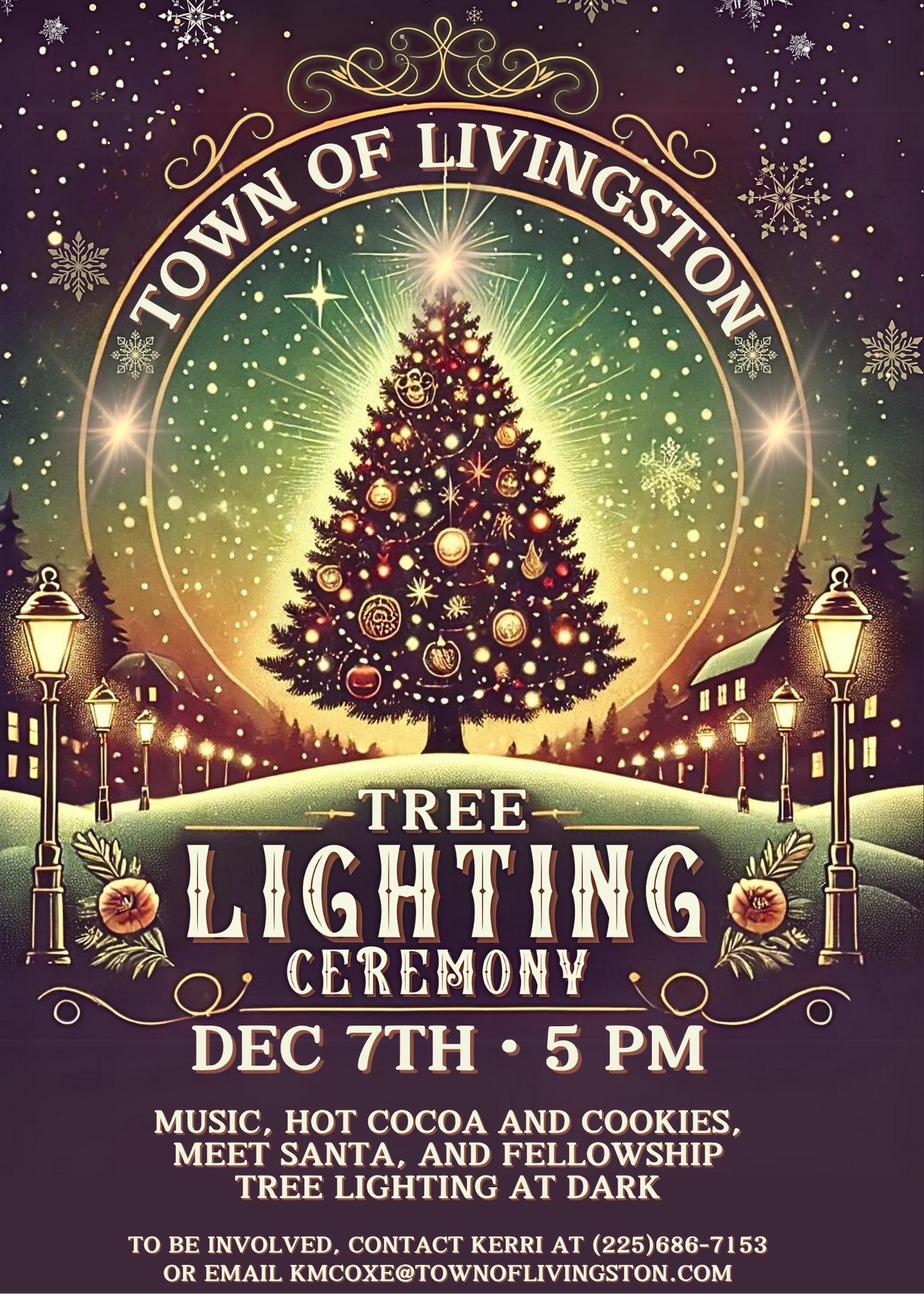 LIGHT UP LIVINGSTON-Sunday, December 7th at 5 PM in Circle Drive Park. Join us for music, hot cocoa, cookies, and fellowship — plus the little ones won’t want to miss the chance to see the big man himself, SANTA! The tree lighting will take place at dark.