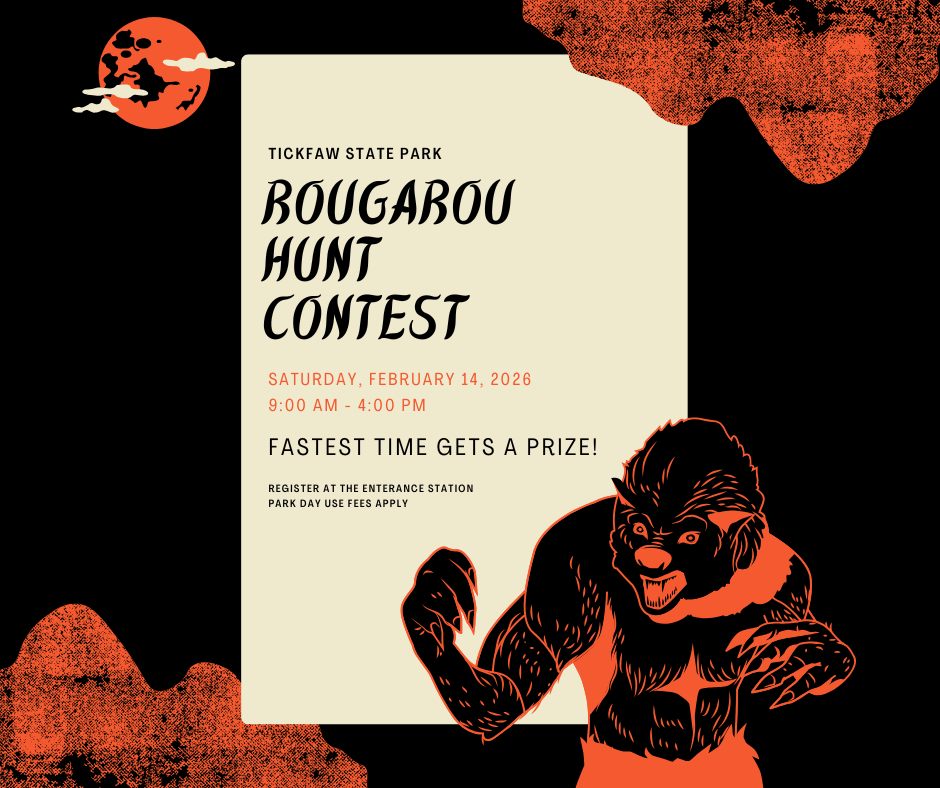Join us on Saturday, February 14, 2026, from 9:00 AM–4:00 PM for your chance to spot the legendary Rougarou hiding in the park!