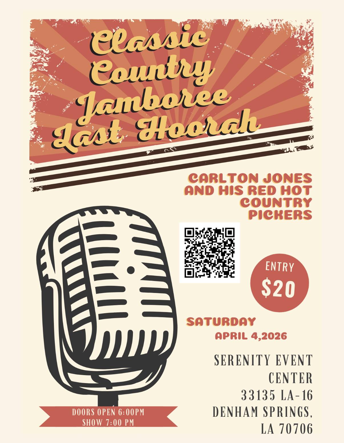 A Livingston Parish tradition will soon be ending. The Classic Country Jamboree show is coming to a close. Their last show with Carlton Jones and The Red Hot Country Pickers will be Saturday, April 4 at the Serenity Event Center in Denham Springs. Thank you to everyone who has hung in there with them.