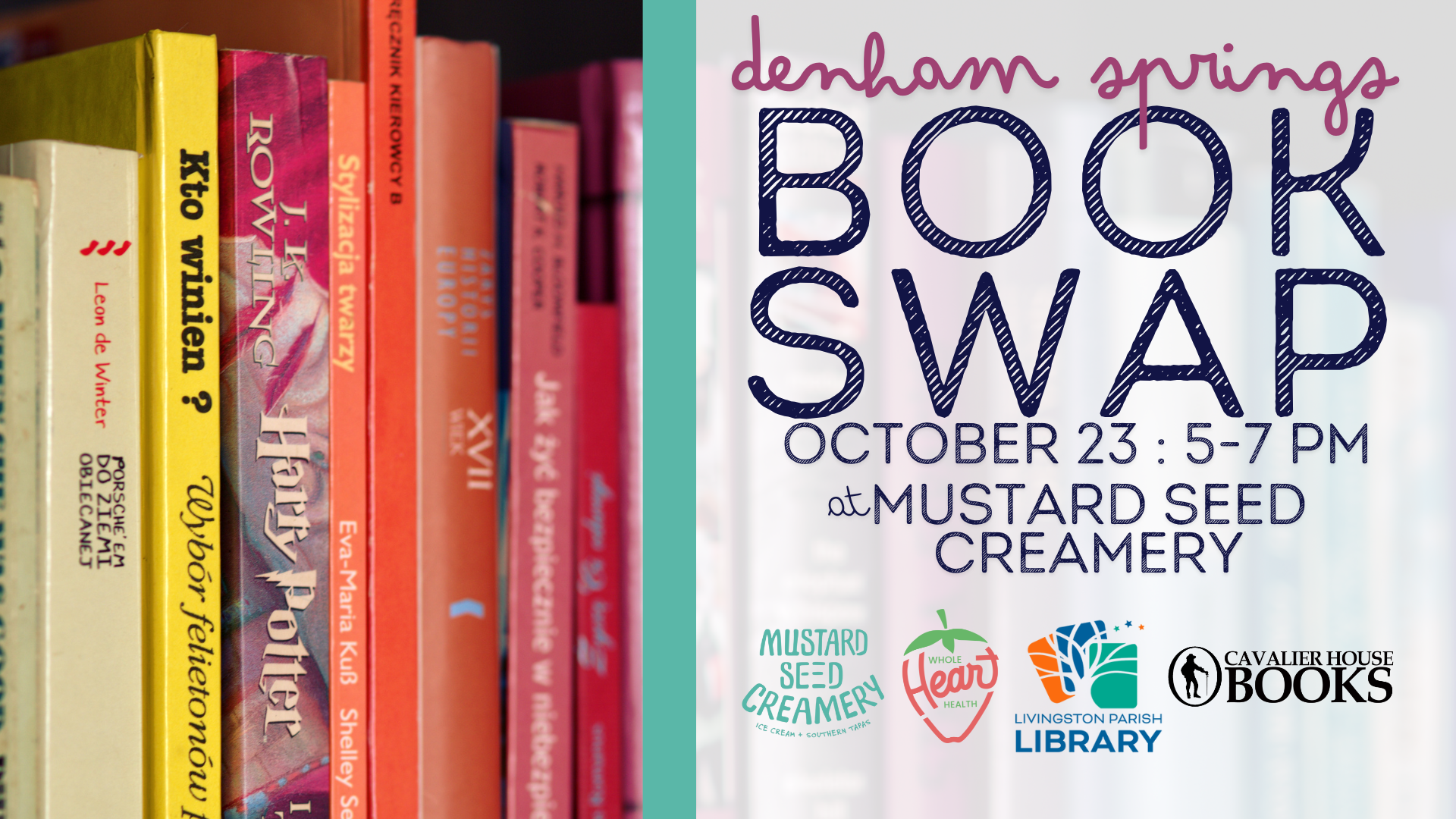 It’s time for our third Denham Springs Book Swap, and we can’t wait to gather again for a night of books, community, and connection!